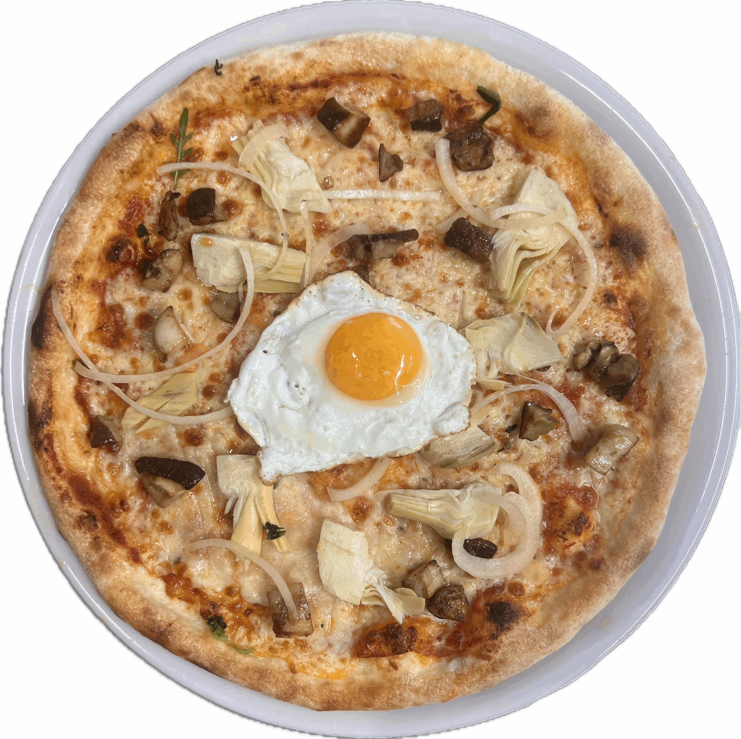 EroticaTomaten Mozzarella Steinpilzen, Artischocken, Ei, Zwiebeln, Trüffelöl